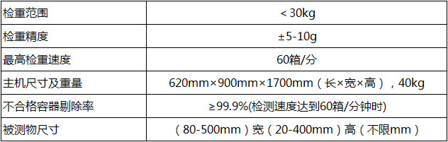 該設(shè)備適用于在線生產(chǎn)的整箱產(chǎn)品的在線自動(dòng)稱重檢測(cè)、欠重檢測(cè)、漏裝檢測(cè),附件缺失檢測(cè)等,廣泛用于飲料、食品、制藥、日化、電子、工業(yè)品、五金、軍工等產(chǎn)品凈含量苛刻的行業(yè)。產(chǎn)品別名:動(dòng)態(tài)檢重秤、在線檢重機(jī)、自動(dòng)稱重機(jī)。